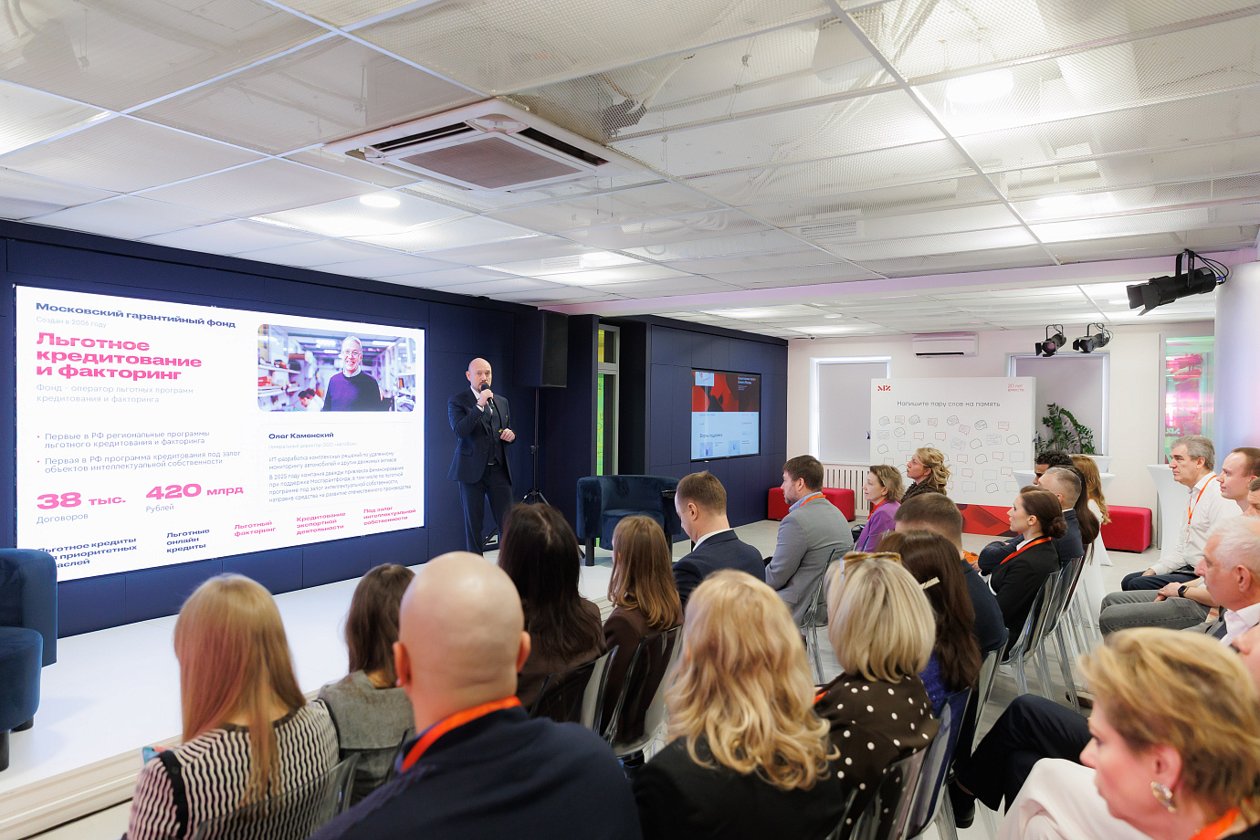 В рамках официальной части выступили и другие почетные гости: Александр Дерюгин — заместитель руководителя Департамента предпринимательства и инновационного развития Москвы, Наталья Шаманская — заместитель директора Департамента инвестиционной политики и развития малого и среднего предпринимательства Минэкономразвития, а также Антон Купринов — исполнительный директор Фонда содействия кредитованию малого бизнеса Москвы.